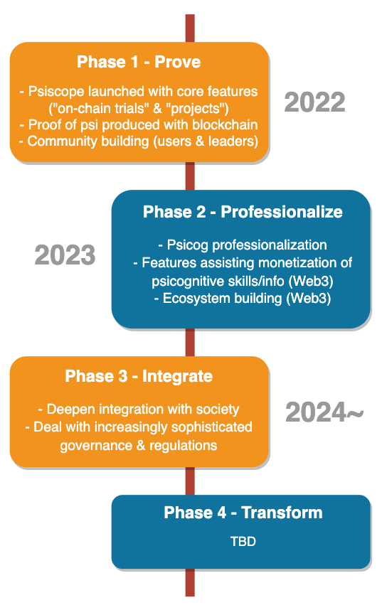 Psiscope is currently in Phase 1 – a small beginning of a big thing, just getting started with grandiose plans ahead (dreaming big is never a bad thing). Aspirational roadmap: